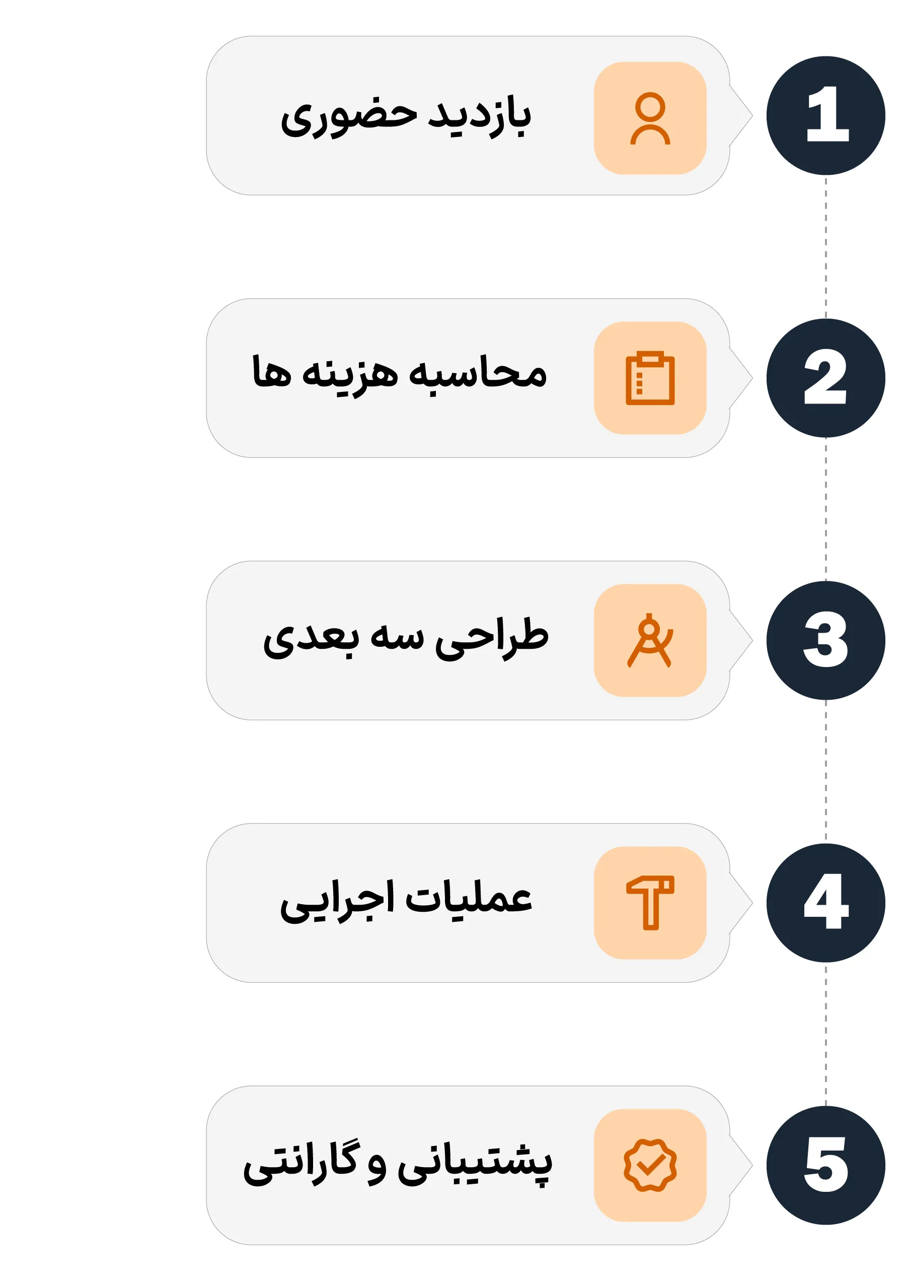 ما به شما کمک میکنیم تا فضایی دلنشین و ماندگار داشته باشید، بدون اینکه نگران زمان یا هزینه باشید. ضمن اینکه قبل از شروع کار، بازدید و مشاوره کاملاً رایگانه.